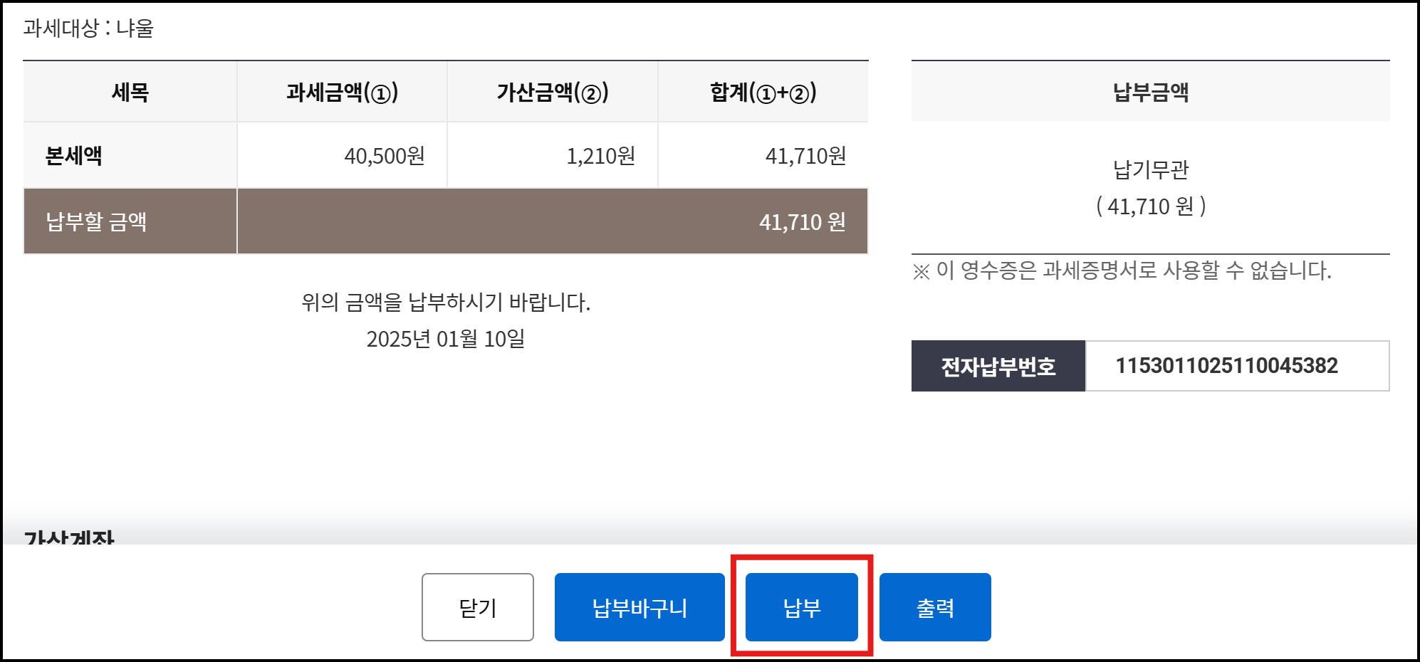 들어가면 납부 목록이 있고 [전자 납부 번호]를 클릭하시면 금액을 확인하실 수 있습니다. 이렇게... 가산금액이 또 나와버렸다...
