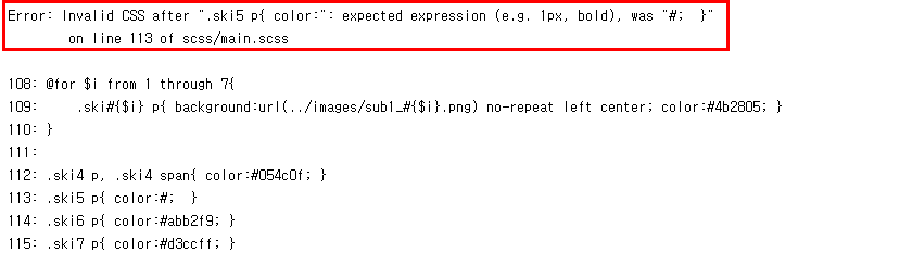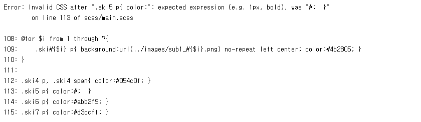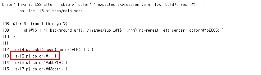 지금은 .ski5 p에 color 값이 없다고 알려주네요.