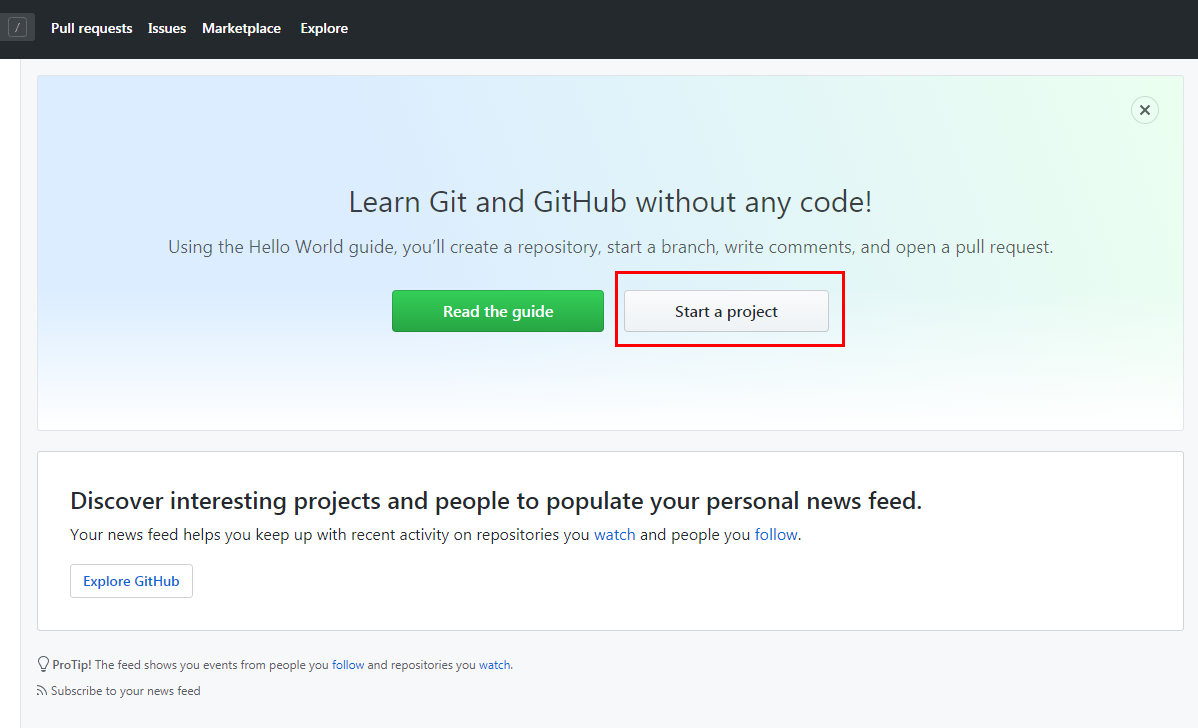 start a project 버튼을 클릭해주세요. 새 프로젝트를 만드는 버튼입니다.