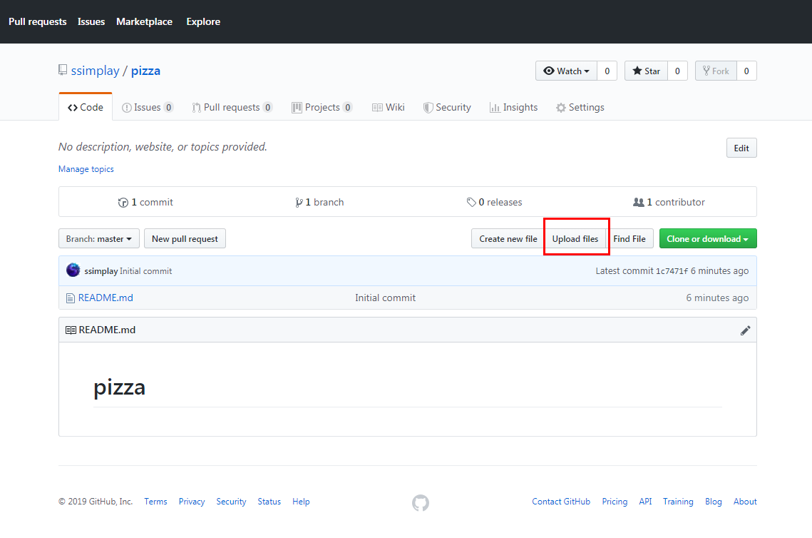 Upload files를 클릭합니다.