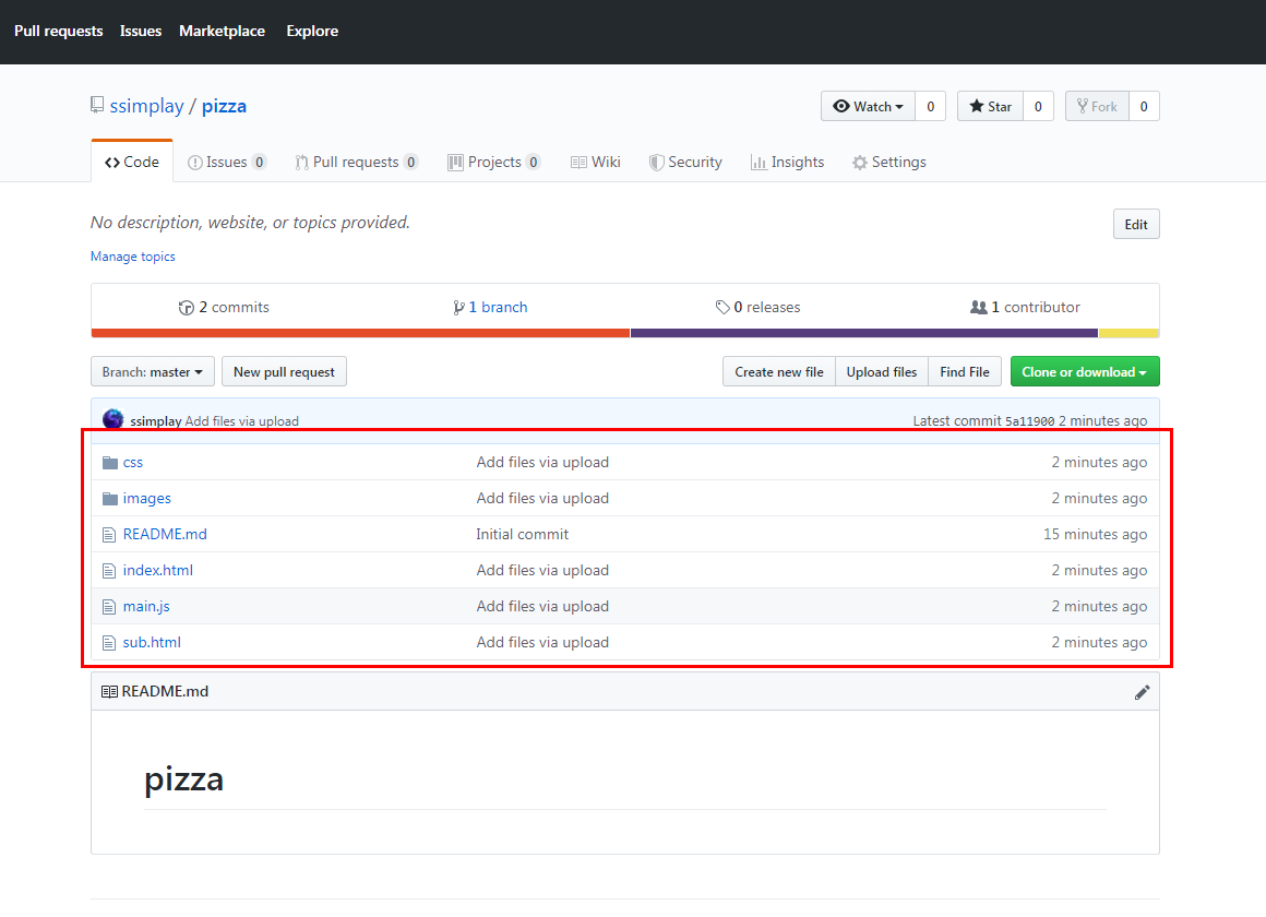 빨간 박스로 표시한 부분에 업로드할 파일들을 올려줍니다.