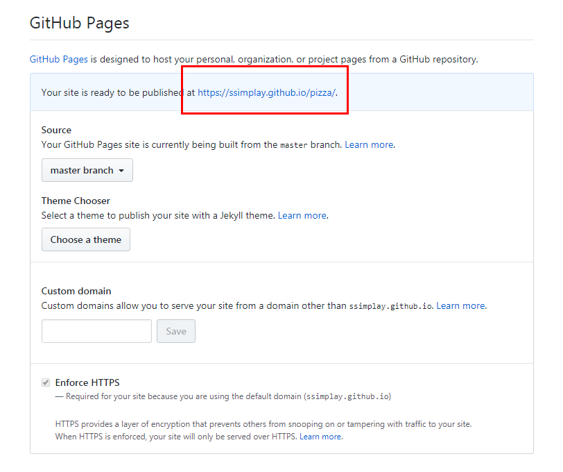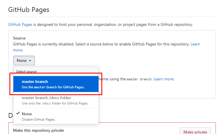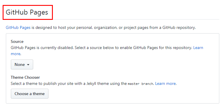 아래로 내리면 GitHub Pages라는 칸이 있습니다.