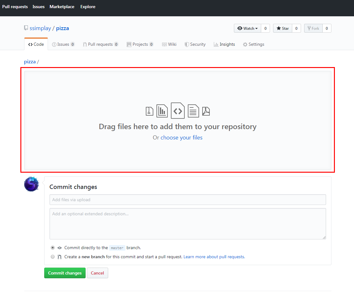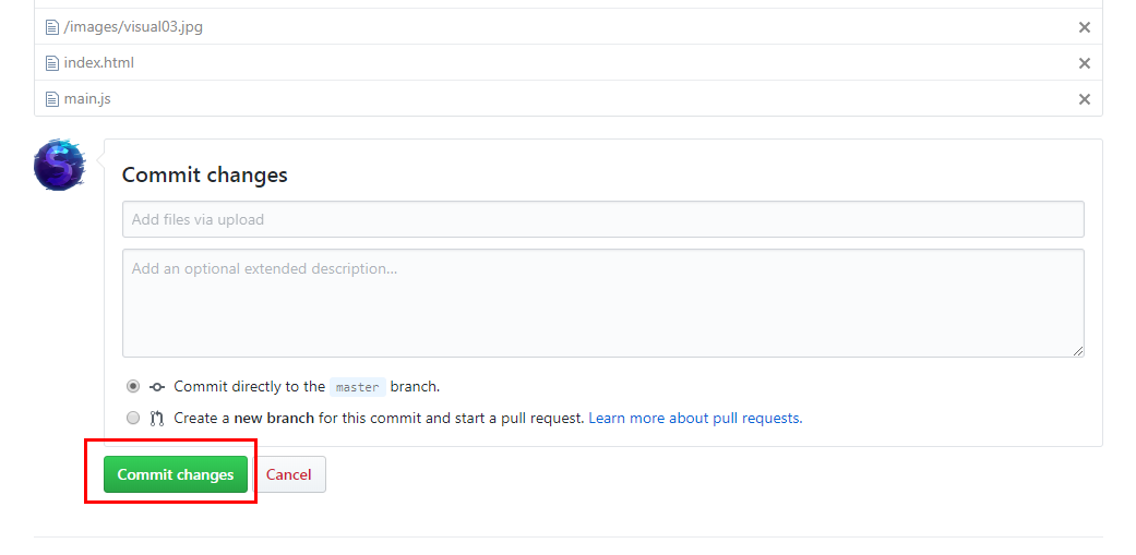 Commit changes버튼을 눌러서 업로드를 완료해줍니다.