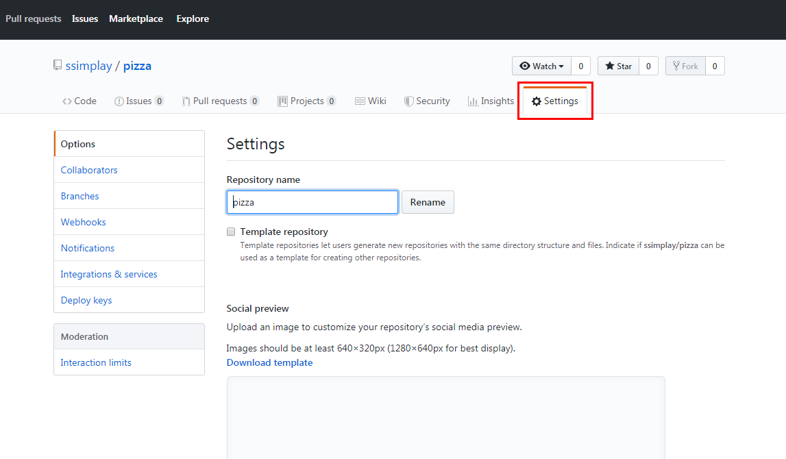 Setings 탭을 눌러주세요.