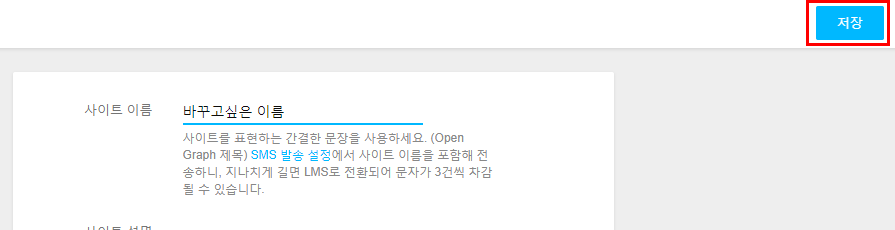 사이트 이름을 원하는 이름으로 변경하면 됩니다.