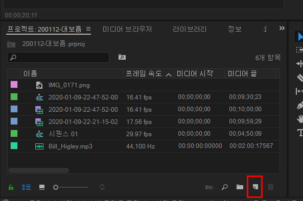 시퀀스의 영상 위 칸으로 드래그해줍니다.
