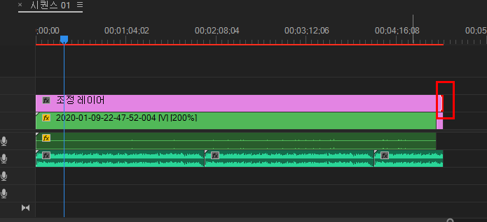 끝쪽을 선택하고 영상 길이만큼 늘려줍니다.