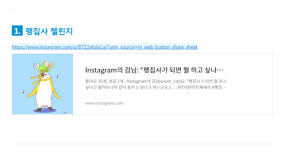 커서를 링크 맨 끝에 두면 이렇게 블럭처리가됩니다.