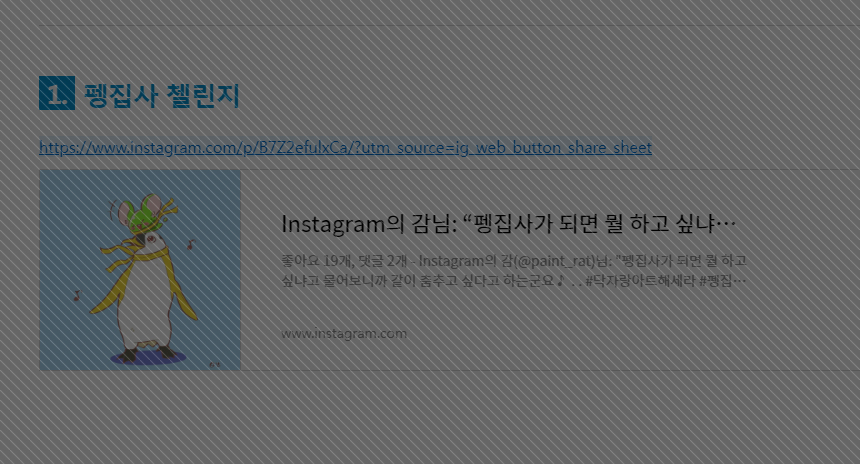 | [물감툰] 펭집사 첼린지 (10) | 2020.01.18 |