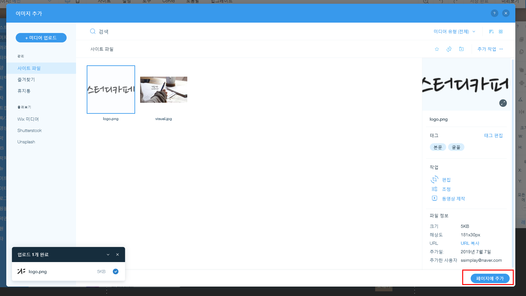 저는 미리 준비해둔 로고 이미지를 업로드할거에요.