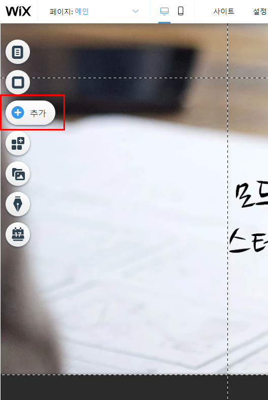 좌측 메뉴에서 +모양의 아이콘에 마우스를 올리면 추가라는 설명이 보여요.