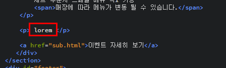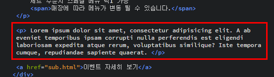 lorem을 <p> 태그 안쪽에 적어줍니다.