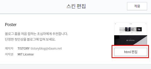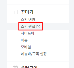 왼쪽 메뉴를 쭉 내리다 보면 스킨 편집 메뉴가 있죠?