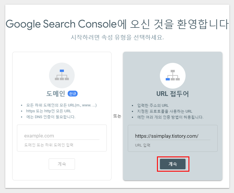 구글 서치 콘솔에 티스토리를 등록해볼게요.