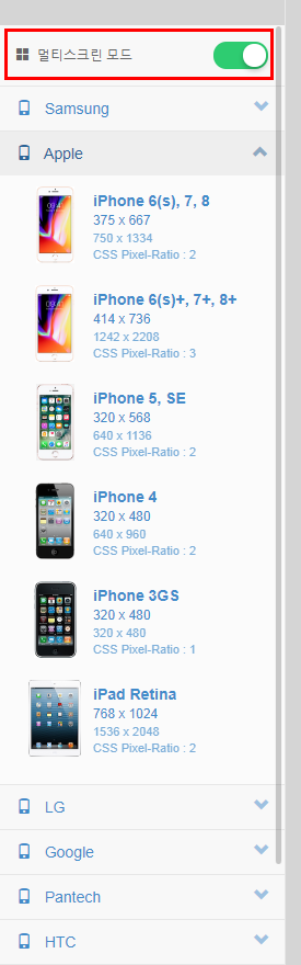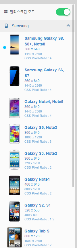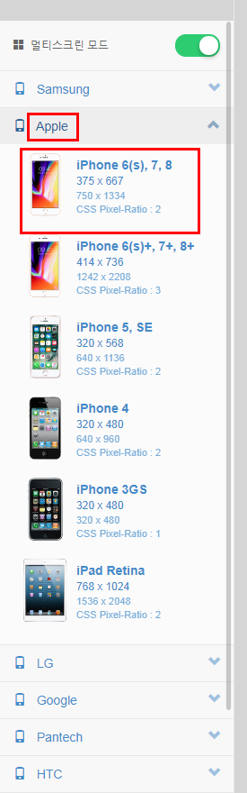 그럴 때는 왼쪽에 있는 메뉴에서 원하는 모바일 기기를 선택하면 된답니다.
