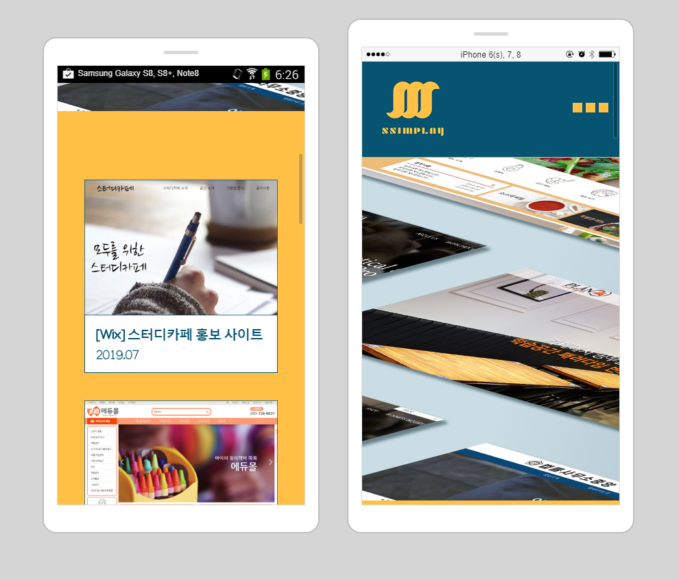 그러면 화면에 이렇게 두 개의 모바일 기기가 보이는 걸 확인할 수 있어요.