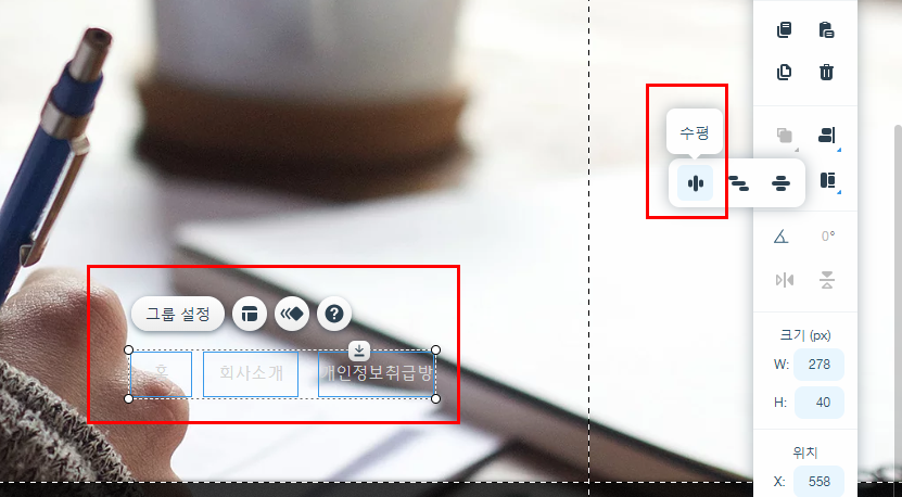 그중 수평을 눌러서 간격을 정렬해줄게요.