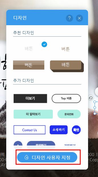 버튼 탭을 선택하고 마음에 드는 디자인을 골라주세요.