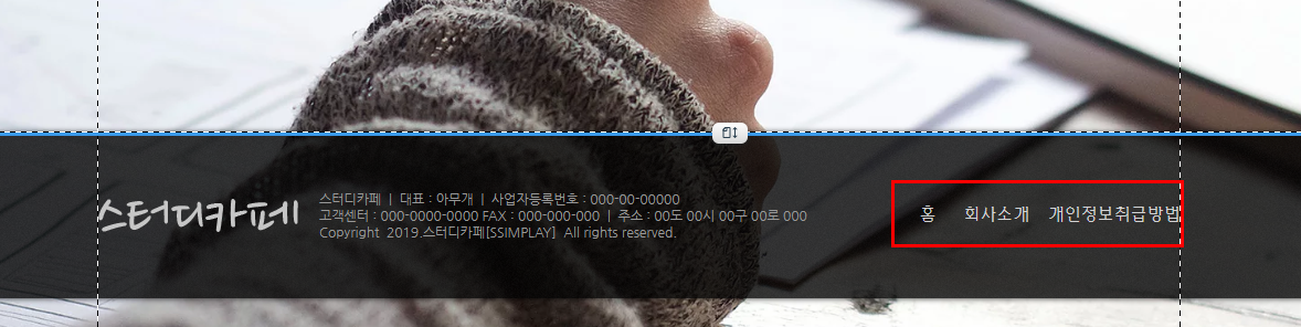 그리고 위치를 적당히 맞춰주시면 바닥글 메뉴 완성이에요~!!