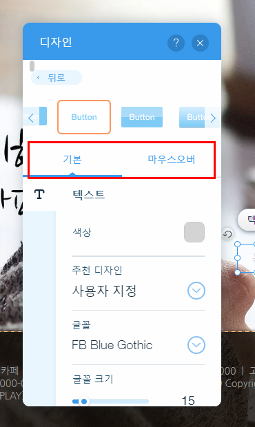 여기서 기본과 마우스 오버 디자인을 변경해주세요.