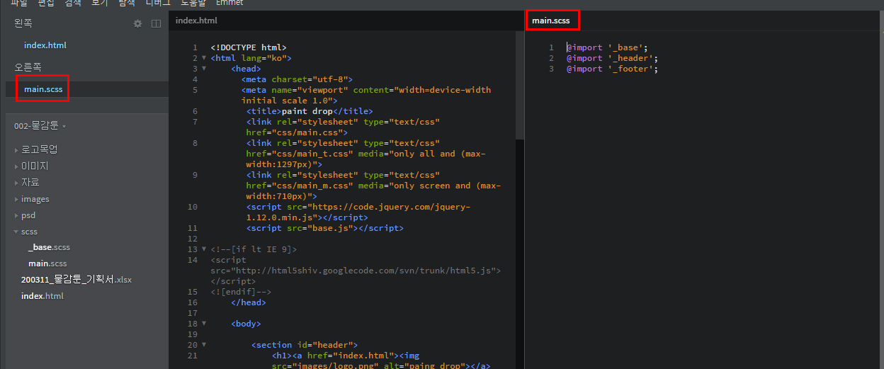 그러면 왼쪽에서 이렇게 분할 화면을 관리할 수 있게 나와요. 오른쪽에도 파일을 하나 열어볼까요?