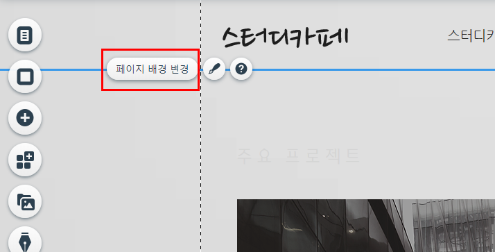 배경을 클릭하면 페이지 배경 변경이라는 아이콘이 나오는데 여기를 클릭해주세요.