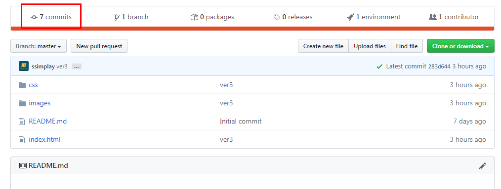 버전을 등록했다면 확인해줘야겠죠. 첫 화면에서 첫 번째 메뉴 commits를 선택해줍니다.
