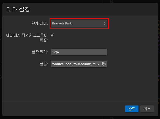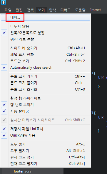 브라킷을 열어서 보기> 테마 메뉴로 들어갑니다.