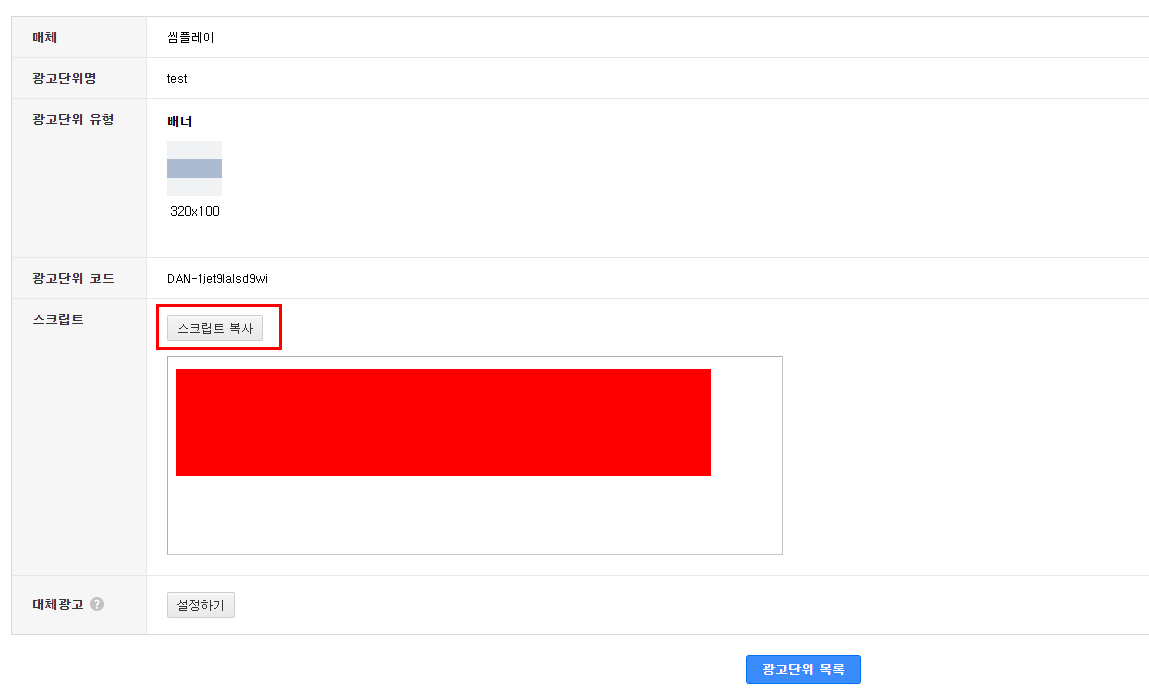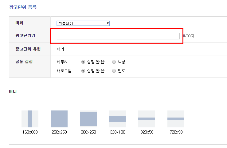 광고단위명은 원하시는 이름을 적어주세요. 나중에 이름만 보고 어디에 있는 광고인지 쉽게 알 수 있는 이름이 좋아요.