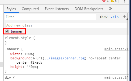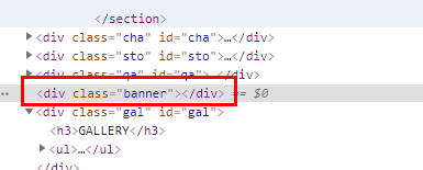 그러면 이렇게 사용된 클래스를 확인할 수 있어요. banner라는 클래스를 사용했네요.