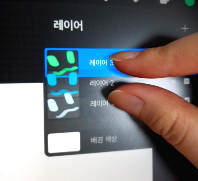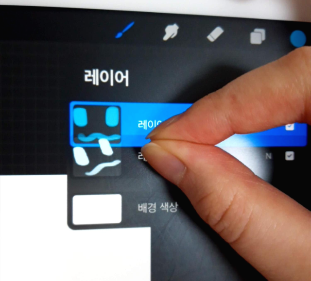 이렇게 레이어 두 개를 손가락으로 모아주듯이 드래그해주세요.