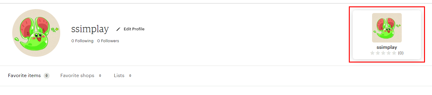 Edit shop 버튼을 눌러서 샵 프로필 이미지를 수정할 수 있어요. 클릭해볼까요?