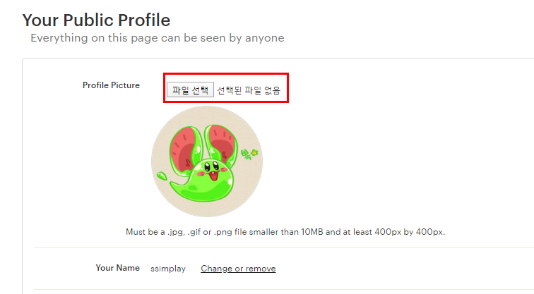 파일 선택을 눌러서 원하는 프로필 사진으로 수정해주세요.