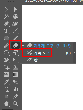 지우개 아이콘을 꾹 눌러주세요. 열리는 메뉴 중 가위 도구가 있을 거예요.