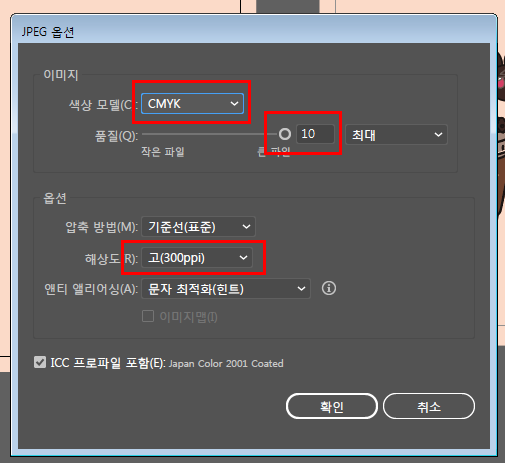 이 설정값은 인쇄용을 기준으로 하고 있습니다.