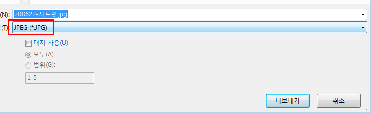내보내기를 누르면 옵션을 설정할 수 있어요.