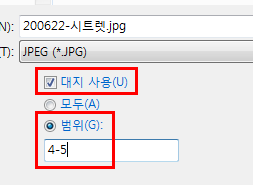 그리고 범위를 선택해서 아까 JPG로 저장하려고 했던 두 개의 대지 번호를 입력해주시면 된답니다.