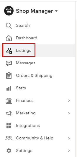 샵 매니저 화면에서 좌측에 있는 메뉴 중 리스팅 메뉴로 들어가 주세요.