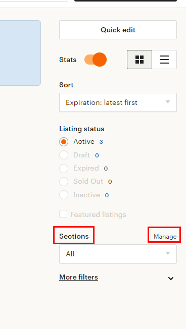 리스팅 화면에서 오른쪽에 보시면 섹션 파트가 있을 거예요.