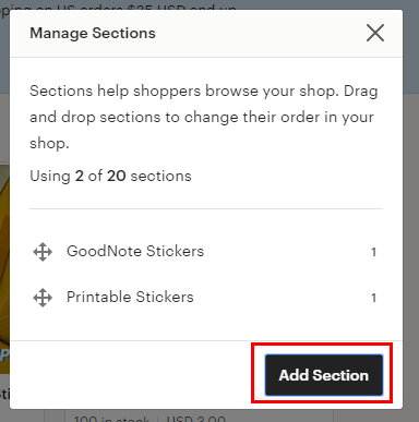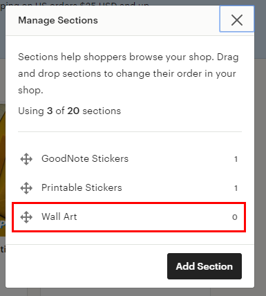 에드 섹션 버튼을 이용해 카테고리를 만들 수 있어요.