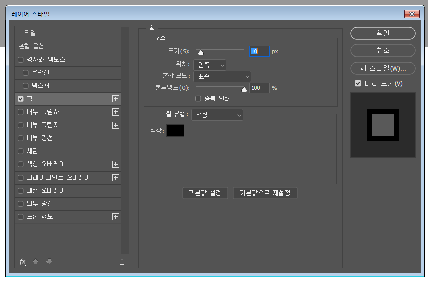 레이어스타일은 투명해지지 않은 것을 알 수 있어요.