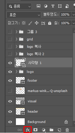 그리고 이 레이어에 획을 추가해줄 거예요. 레이어 패널에서 레이어스타일을 눌러주세요.