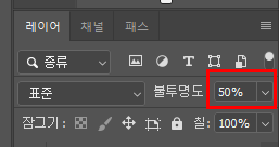 해당 레이어의 불투명도가 줄어드는 것을 알 수 있을 거예요.