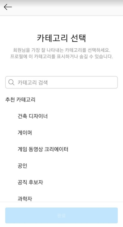 다음을 누르면 카테고리를 선택하라고 나옵니다.