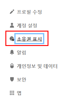 설정 메뉴의 왼쪽을 보시면 소유권 표시 메뉴를 볼 수 있어요.