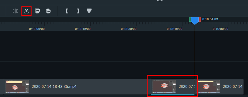 이제 마지막으로 자를 영상을 선택하고 가위 모양 아이콘인 컷툴을 선택해주세요.
