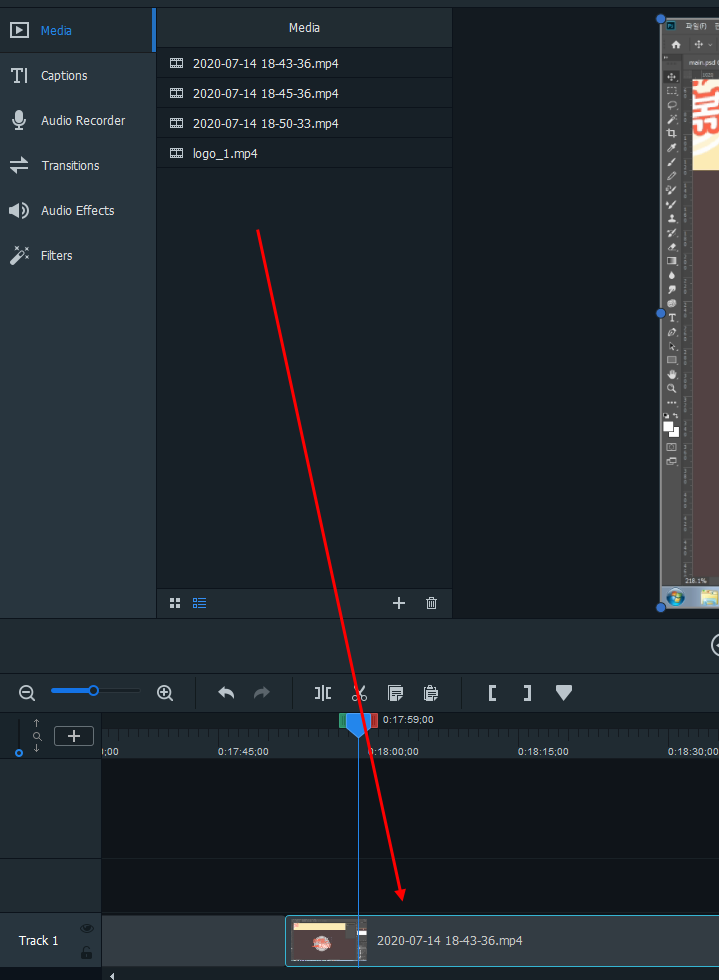 영상을 불러왔다면 아래 트랙으로 쭈욱 드래그를 해주세요.