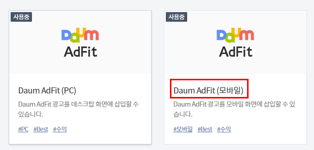 pc도 동일한 방법으로 애드핏 광고를 설정해주시면 됩니다.