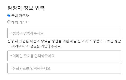 마지막으로 담당자 정보를 입력해주세요.