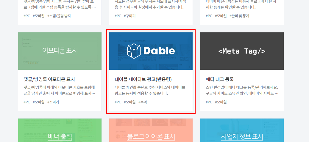 플러그인들을 쭉쭉 내리다 보면 이렇게 데이블 네이티브 광고라는 것을 발견하실 수 있을 거예요.